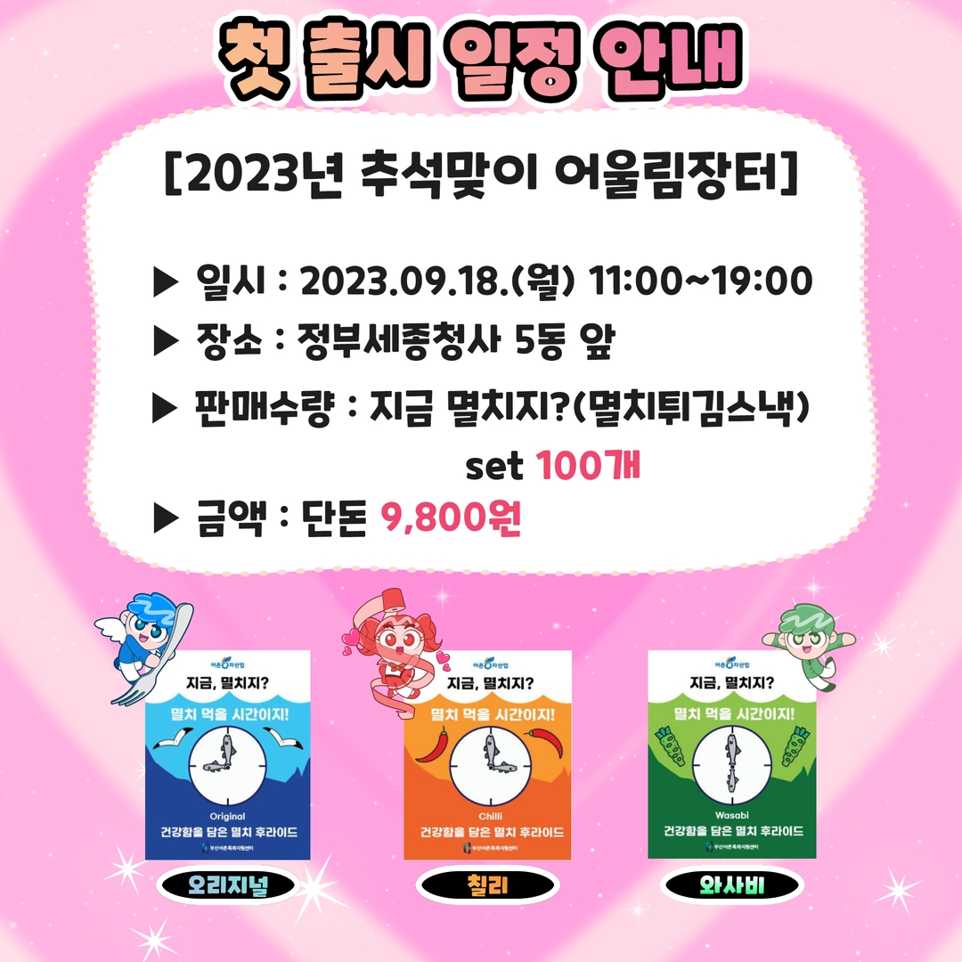 다가오는 9월 18일(월), 정부세종청사 5동 앞에서 개최되는 2023년 추석맞이 어울림장터에서 첫 출시할 예정이니
